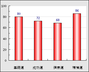環境運 家庭や職場等での援助運・環境運を司ります。これが良いと配偶者や子供・職場の同僚などから助力が得られやすく、悪いと波乱・不和・孤独などがあります。 86点