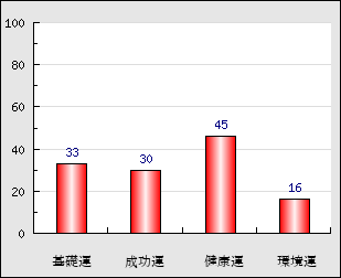 成功運 目的に対する成功運の強さをあらわします。この点数が高いほど自分の思い通りに成功し、逆に悪いと逆境・批判・障害などに苦心します。 30点