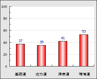 成功運 目的に対する成功運の強さをあらわします。この点数が高いほど自分の思い通りに成功し、逆に悪いと逆境・批判・障害などに苦心します。 35点