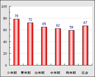 | 中年期 | 50~65歳頃 | 62点- 5.0 |