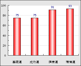 | 環境運 | 家庭や職場等での援助運・環境運を司ります。これが良いと配偶者や子供・職場の同僚などから助力が得られやすく、悪いと波乱・不和・孤独などがあります。 | 93点 |