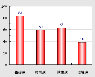 環境運 家庭や職場等での援助運・環境運を司ります。これが良いと配偶者や子供・職場の同僚などから助力が得られやすく、悪いと波乱・不和・孤独などがあります。 38点