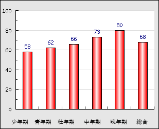 | 中年期 | 50~65歳頃 | 85.3点+ 3.6 |