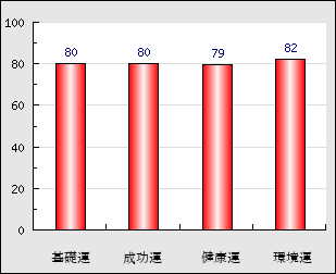成功運 目的に対する成功運の強さをあらわします。この点数が高いほど自分の思い通りに成功し、逆に悪いと逆境・批判・障害などに苦心します。 80点