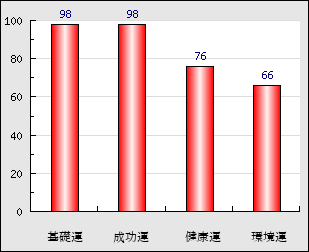 環境運 家庭や職場等での援助運・環境運を司ります。これが良いと配偶者や子供・職場の同僚などから助力が得られやすく、悪いと波乱・不和・孤独などがあります。 66点