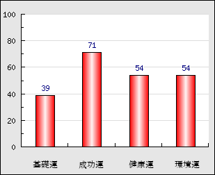 環境運 家庭や職場等での援助運・環境運を司ります。これが良いと配偶者や子供・職場の同僚などから助力が得られやすく、悪いと波乱・不和・孤独などがあります。 54点