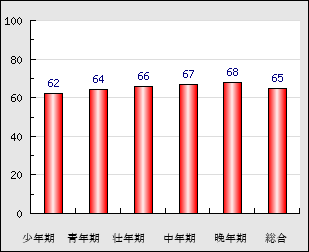 | 中年期 | 50~65歳頃 | 61.4点+ 0.6 |