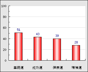 成功運 目的に対する成功運の強さをあらわします。この点数が高いほど自分の思い通りに成功し、逆に悪いと逆境・批判・障害などに苦心します。 43点