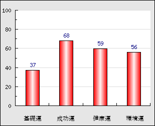成功運 目的に対する成功運の強さをあらわします。この点数が高いほど自分の思い通りに成功し、逆に悪いと逆境・批判・障害などに苦心します。 68点