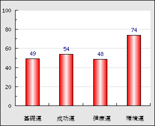 環境運 家庭や職場等での援助運・環境運を司ります。これが良いと配偶者や子供・職場の同僚などから助力が得られやすく、悪いと波乱・不和・孤独などがあります。 74点