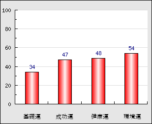 環境運 家庭や職場等での援助運・環境運を司ります。これが良いと配偶者や子供・職場の同僚などから助力が得られやすく、悪いと波乱・不和・孤独などがあります。 54点