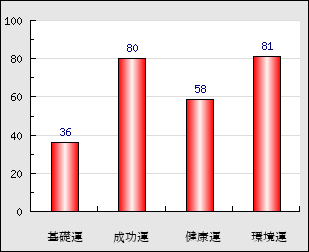 成功運 目的に対する成功運の強さをあらわします。この点数が高いほど自分の思い通りに成功し、逆に悪いと逆境・批判・障害などに苦心します。 80点