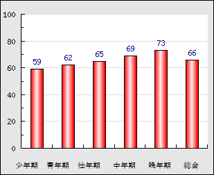 | 中年期 | 50~65歳頃 | 69点+ 3.0 |