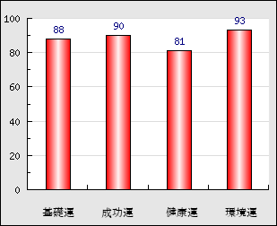成功運 目的に対する成功運の強さをあらわします。この点数が高いほど自分の思い通りに成功し、逆に悪いと逆境・批判・障害などに苦心します。 90点