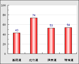 成功運 目的に対する成功運の強さをあらわします。この点数が高いほど自分の思い通りに成功し、逆に悪いと逆境・批判・障害などに苦心します。 74点