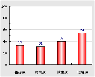 成功運 目的に対する成功運の強さをあらわします。この点数が高いほど自分の思い通りに成功し、逆に悪いと逆境・批判・障害などに苦心します。 31点