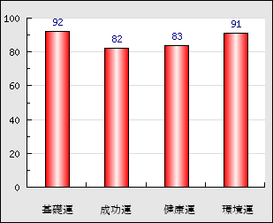 環境運 家庭や職場等での援助運・環境運を司ります。これが良いと配偶者や子供・職場の同僚などから助力が得られやすく、悪いと波乱・不和・孤独などがあります。 91点