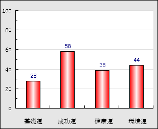 成功運 目的に対する成功運の強さをあらわします。この点数が高いほど自分の思い通りに成功し、逆に悪いと逆境・批判・障害などに苦心します。 58点
