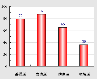 健康運 体力・健康に恵まれるか否かをあらわします。先天的に健康に恵まれても、これが悪いと次第に病弱となり、種々の病気に悩まされやすくなります。 65点
