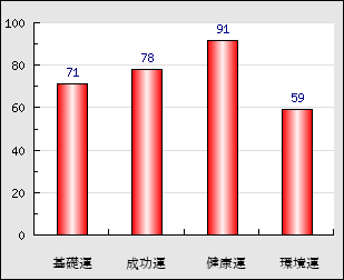 環境運 家庭や職場等での援助運・環境運を司ります。これが良いと配偶者や子供・職場の同僚などから助力が得られやすく、悪いと波乱・不和・孤独などがあります。 59点