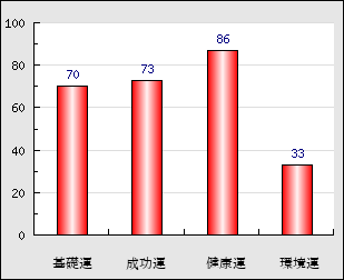 環境運 家庭や職場等での援助運・環境運を司ります。これが良いと配偶者や子供・職場の同僚などから助力が得られやすく、悪いと波乱・不和・孤独などがあります。 33点