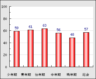 | 壮年期 | 35~50歳頃 | 63点+ 6.0 |