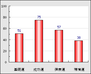 成功運 目的に対する成功運の強さをあらわします。この点数が高いほど自分の思い通りに成功し、逆に悪いと逆境・批判・障害などに苦心します。 75点