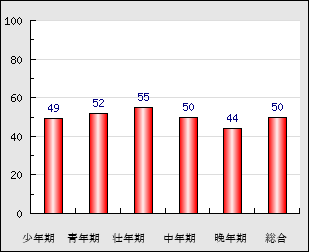| 中年期 | 50~65歳頃 | 50点 0.0 |