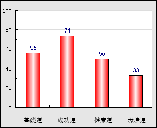 環境運 家庭や職場等での援助運・環境運を司ります。これが良いと配偶者や子供・職場の同僚などから助力が得られやすく、悪いと波乱・不和・孤独などがあります。 33点