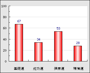 環境運 家庭や職場等での援助運・環境運を司ります。これが良いと配偶者や子供・職場の同僚などから助力が得られやすく、悪いと波乱・不和・孤独などがあります。 28点