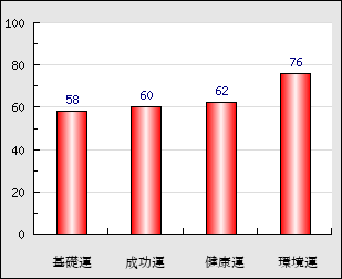 環境運 家庭や職場等での援助運・環境運を司ります。これが良いと配偶者や子供・職場の同僚などから助力が得られやすく、悪いと波乱・不和・孤独などがあります。 76点