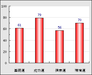 環境運 家庭や職場等での援助運・環境運を司ります。これが良いと配偶者や子供・職場の同僚などから助力が得られやすく、悪いと波乱・不和・孤独などがあります。 70点