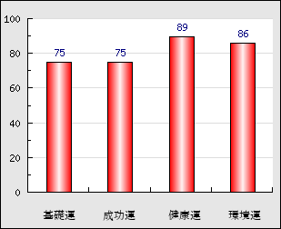 環境運 家庭や職場等での援助運・環境運を司ります。これが良いと配偶者や子供・職場の同僚などから助力が得られやすく、悪いと波乱・不和・孤独などがあります。 86点