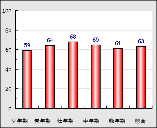 | 中年期 | 50~65歳頃 | 65.1点+ 2.6 |