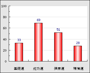 環境運 家庭や職場等での援助運・環境運を司ります。これが良いと配偶者や子供・職場の同僚などから助力が得られやすく、悪いと波乱・不和・孤独などがあります。 28点