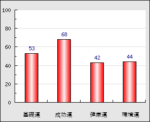 成功運 目的に対する成功運の強さをあらわします。この点数が高いほど自分の思い通りに成功し、逆に悪いと逆境・批判・障害などに苦心します。 68点