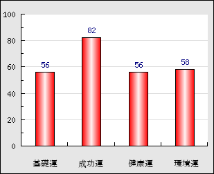 環境運 家庭や職場等での援助運・環境運を司ります。これが良いと配偶者や子供・職場の同僚などから助力が得られやすく、悪いと波乱・不和・孤独などがあります。 58点