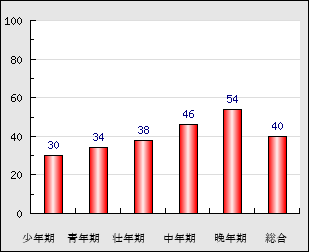 | 幼年期 | ~20歳頃 | 44.2点- 5.6 |