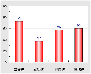 成功運 目的に対する成功運の強さをあらわします。この点数が高いほど自分の思い通りに成功し、逆に悪いと逆境・批判・障害などに苦心します。 37点