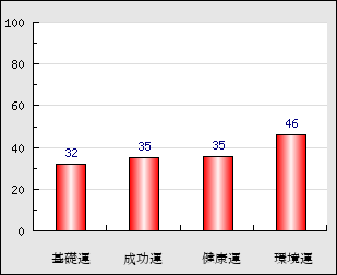 環境運 家庭や職場等での援助運・環境運を司ります。これが良いと配偶者や子供・職場の同僚などから助力が得られやすく、悪いと波乱・不和・孤独などがあります。 46点