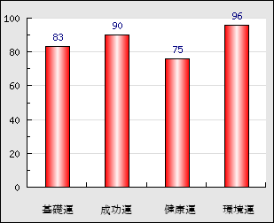 環境運 家庭や職場等での援助運・環境運を司ります。これが良いと配偶者や子供・職場の同僚などから助力が得られやすく、悪いと波乱・不和・孤独などがあります。 96点