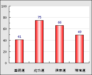 成功運 目的に対する成功運の強さをあらわします。この点数が高いほど自分の思い通りに成功し、逆に悪いと逆境・批判・障害などに苦心します。 75点