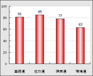 成功運 目的に対する成功運の強さをあらわします。この点数が高いほど自分の思い通りに成功し、逆に悪いと逆境・批判・障害などに苦心します。 85点