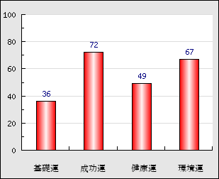 成功運 目的に対する成功運の強さをあらわします。この点数が高いほど自分の思い通りに成功し、逆に悪いと逆境・批判・障害などに苦心します。 72点