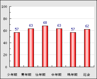 | 中年期 | 50~65歳頃 | 61.8点+ 1.1 |