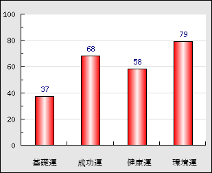 環境運 家庭や職場等での援助運・環境運を司ります。これが良いと配偶者や子供・職場の同僚などから助力が得られやすく、悪いと波乱・不和・孤独などがあります。 79点