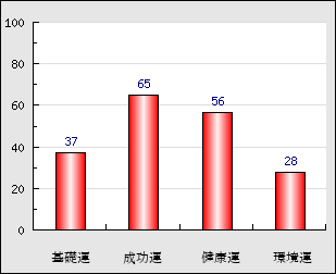 成功運 目的に対する成功運の強さをあらわします。この点数が高いほど自分の思い通りに成功し、逆に悪いと逆境・批判・障害などに苦心します。 65点