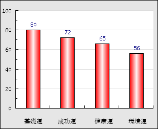 環境運 家庭や職場等での援助運・環境運を司ります。これが良いと配偶者や子供・職場の同僚などから助力が得られやすく、悪いと波乱・不和・孤独などがあります。 56点