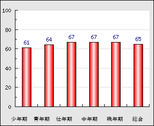 | 中年期 | 50~65歳頃 | 67.1点+ 0.7 |