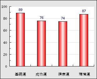 環境運 家庭や職場等での援助運・環境運を司ります。これが良いと配偶者や子供・職場の同僚などから助力が得られやすく、悪いと波乱・不和・孤独などがあります。 87点